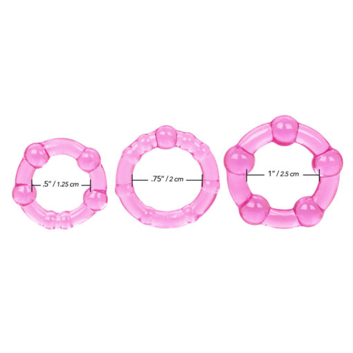 CalExotics Island Rings — Set de 3 anillos para el pene, elásticos y texturizados Morado