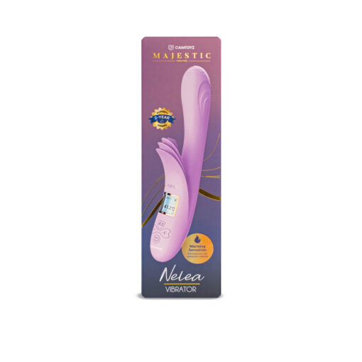 Nelea es el conejo térmico de la línea Majestic de Camtoyz pensado para quienes quieren más: dos extremos con formas complementarias (uno tipo bulbo y otro alargado) y dos motores independientes que llenan de vibraciones potentes y silenciosas cada zona que te encanta. Activa su función de calor para alcanzar aproximadamente 41 °C y sentir una calidez deliciosa que relaja y aumenta la sensibilidad. La pantalla integrada te muestra la temperatura de forma clara para jugar con total control.
