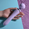 Vibrato de Playboy Pleasure es un wand dual que canta al ritmo de tus fantasías. Por un lado, su cabeza redondeada y texturizada masajea clítoris, pezones y todo punto externo con un cuello súper flexible que se adapta a tu cuerpo. Por el otro, su base texturizada gira y vibra para una estimulación interna deliciosa. En Sexysima® lo elegimos porque combina estilo, potencia y versatilidad en un diseño lila de tacto sedoso.